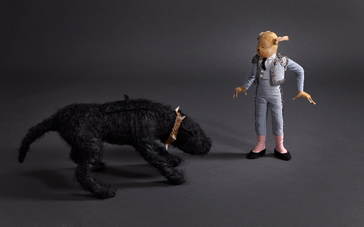 A handsome matador stands unprotected, confronted by a dominant opponent in the form of a large black dog. The dog is bearing down preparing to pounce; the matador is tense and ready to react. The name, Pas de Deux, references the dangerous ballet between a matador and his bull as they observe each other’s movements during battle. It is one of a series of works featuring black dogs in Brave to the Bone, inspired by the incredible fight Linde has put up over the last twelve months against that fearsome opponent cancer and it’s running mate depression, and the strength and humour she has shown throughout.