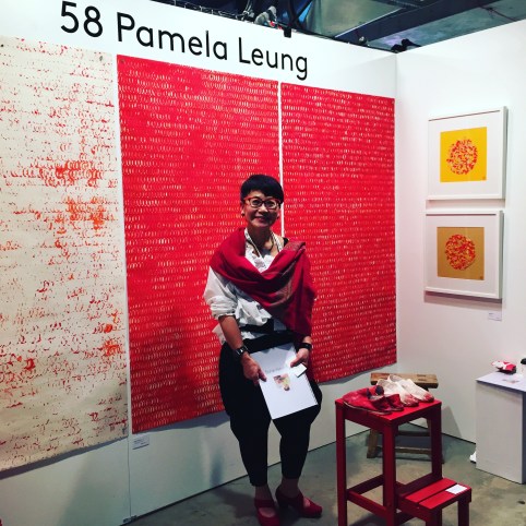 Pamela Leung is probably the warmest person I’ve ever met, which makes sense considering her booth is swathed in fiery red and orange! Though she has lived in Australia for forty years now, her Hong Kong roots heavily influence her art, which is both visually stunning and profound in its message. Also, the woman must be aging backwards, because she told me she’s 64 but she quite literally doesn’t have a single wrinkle on her lovely face. Oh to have those genes!