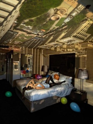 The uneasy relationship city dwellers have with their surroundings is at the heart of contemporary photographer Robyn Stacey’s new exhibition Cloud Land, currently on view at the Museum of Brisbane. Inspired by the millennia-old technique of camera obscura, Stacey has covered the walls of some of Brisbane’s most private spaces in projections of our most public, creating a body of work that is visually very beautiful, but also confronting in its honest exploration of isolation in the city. Though I’ve included a few images here for reference, Stacey’s work really needs to be seen large to best be appreciated. The detail in the rooms and the irony of the external location are vital to understanding her artistic intent.