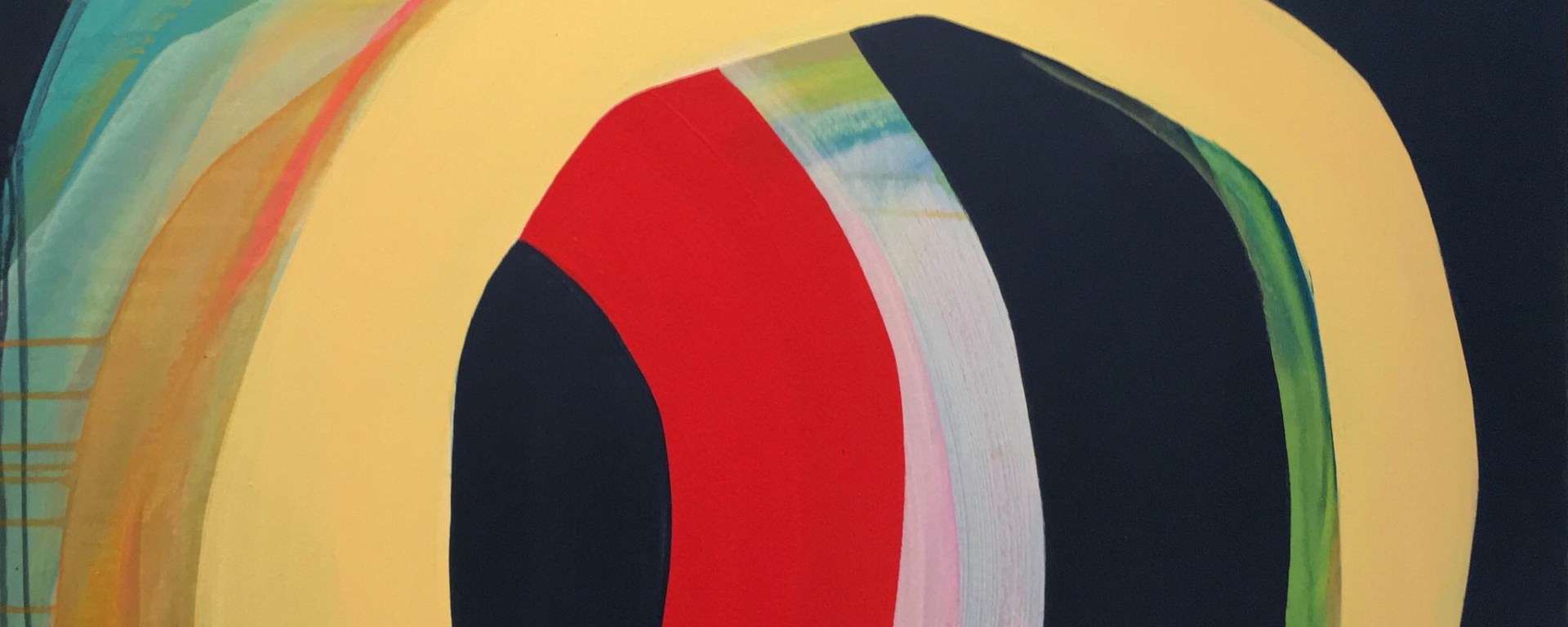 Expansive, bright and energetic, Mooney’s gestural abstractions are experimentations in suspense and unknowing. Using a combination of media including aerosol and oils, she allows the colour blends and movements that appear on the canvas to dictate themselves, combining and repelling as they interact. The resulting works have a motion akin to that of a dancer, arcing up and sweeping gracefully across a stage.