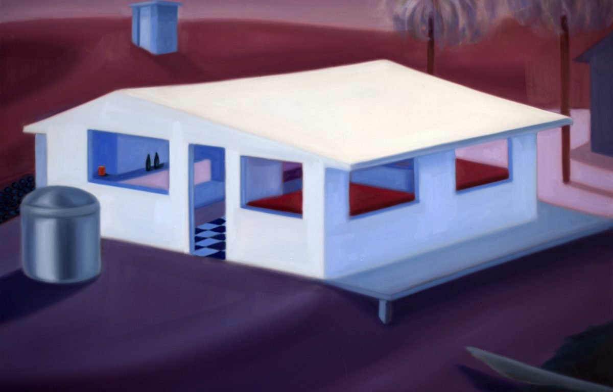 Lucy O’Doherty’s quirky, immediately identifiable aesthetic is the result of experimentations with colour, technique, light and shade. Using a retro colour palette and undefined brush strokes, she presents an idiosyncratic imitation of suburbia inspired by Depression Era architecture, motel postcards, and 1950s-60s Australian beach culture.