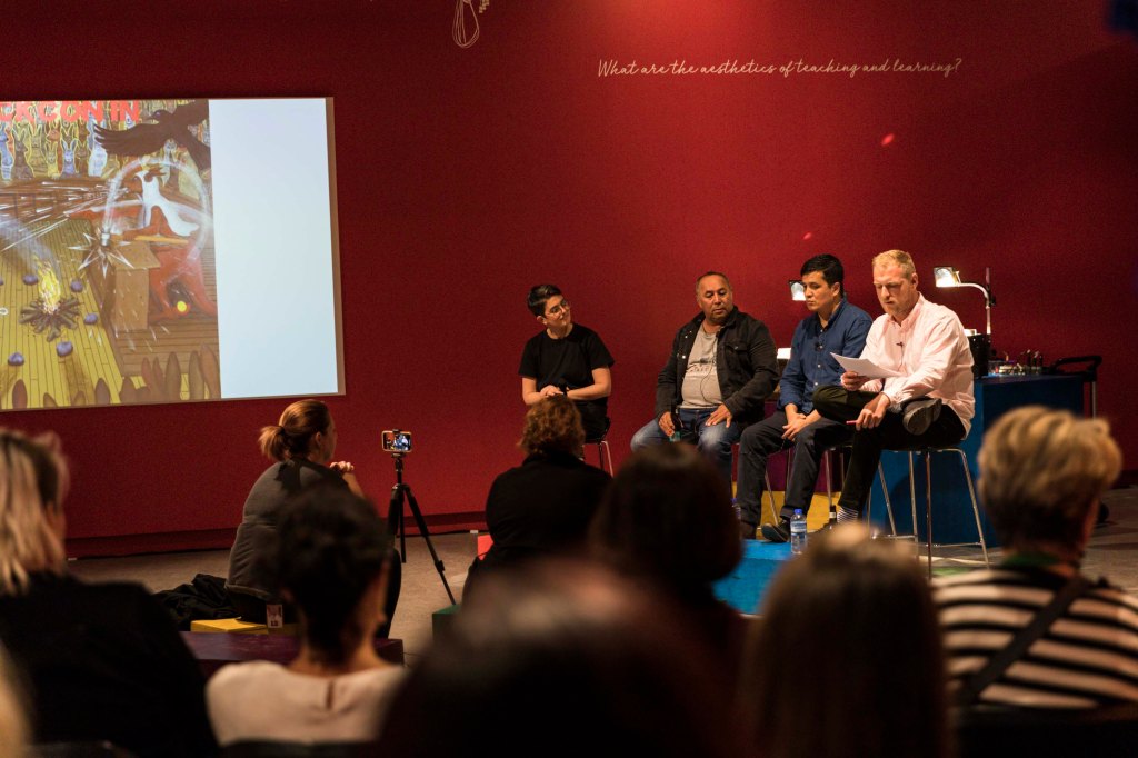 | Panel Discussion. Artist as Educator: Examining Relationships Between Art Practice & Learning in Gallery Contexts. Artists: Judy Watson, Dale Harding, Paul Bai. Chair: Shannon Brett. |