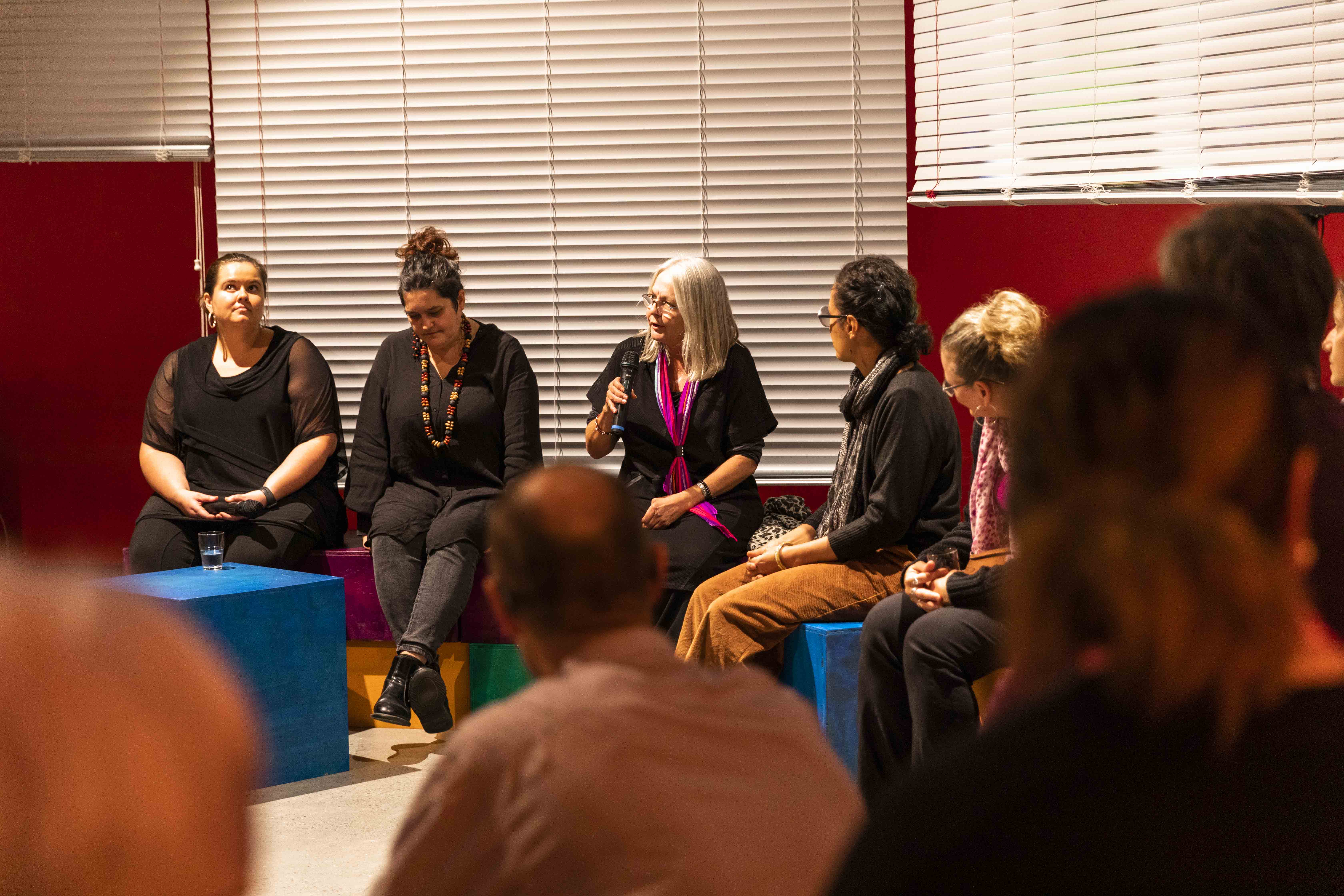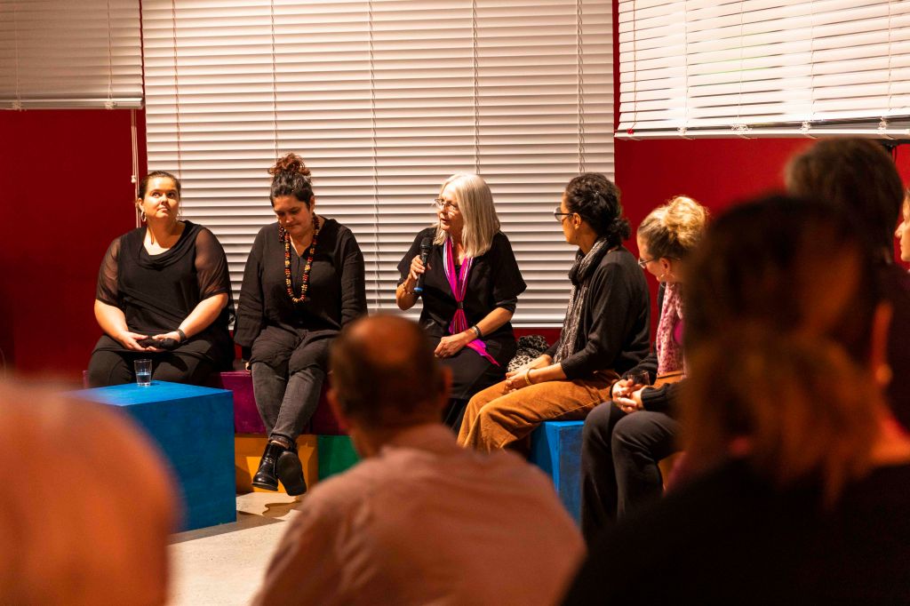 | Panel Discussion. Art Inspiring Change. Artists: Gordon Hookey, Sha Sarwari, Courtney Coombs. Chair: Hamish Sawyer |