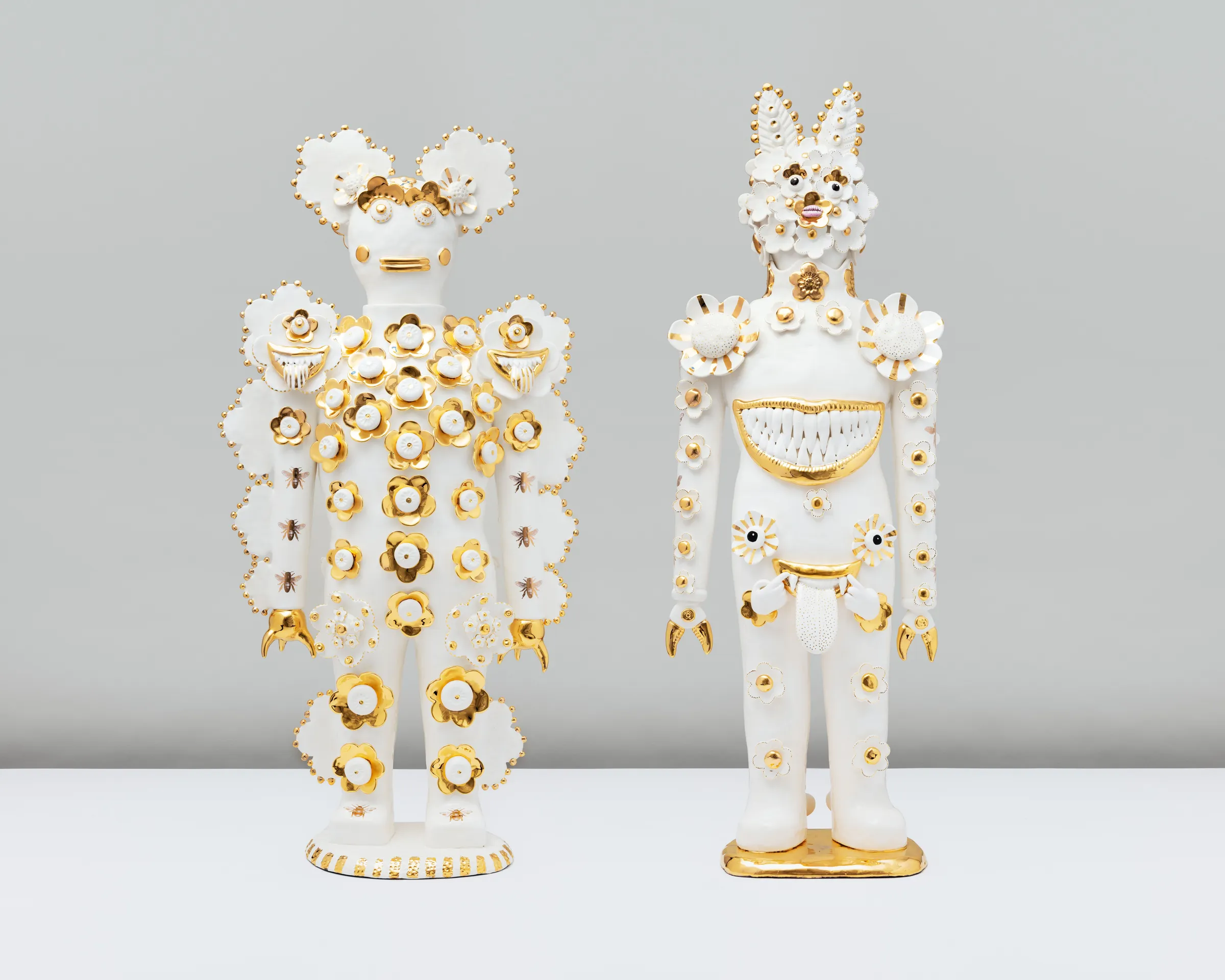 Over a career spanning more than 20 years, Vipoo Srivilasa has created intricate and elaborate artworks that reflect his bicultural experience living between Australia and Thailand. Working mostly in ceramic, he celebrates the intersections and overlaps between our cultural, social, philosophical, and environmental ideologies with a mix of humour and reverence, iconography and ornamentalism.