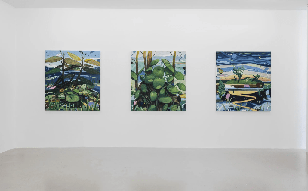 Myles Young’s landscapes are purposefully artificial. Drawn directly from his imagination, they are fusions of reality and fantasy that synthesise distinct views from various standpoints; contemplations on the elements you can’t see – air, vibrations, sensations; and anecdotes from his childhood spent between the ocean and lush rainforest of northern New South Wales.