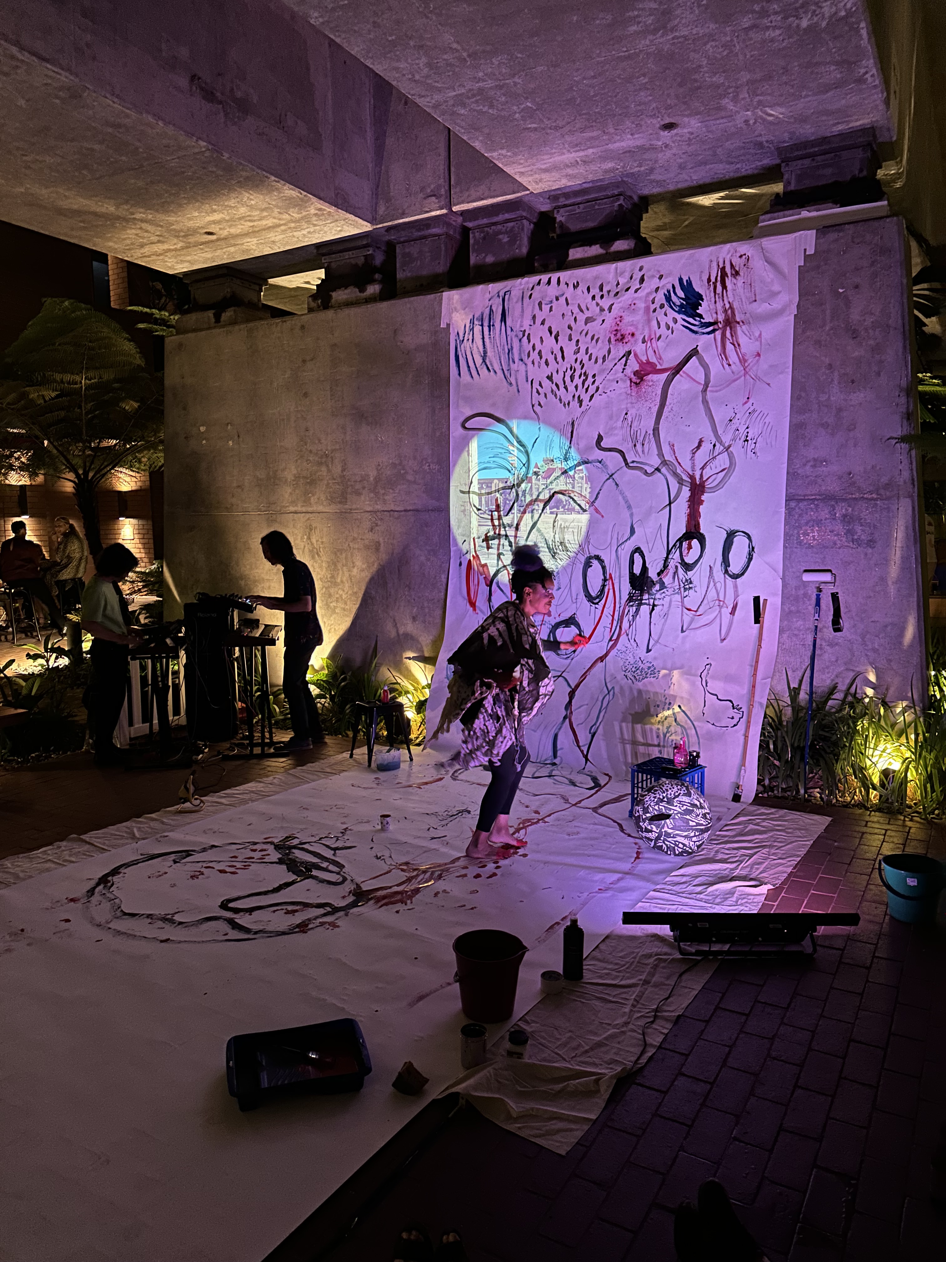 (ZP): The Hope Street Studio was attractive because I was able to do a residency locally and it was fantastic having a studio right in the heart of the city/South Brisbane. The residency was flexible and allowed me to have space and time for reflection away from my usual home studio. I ended up producing multiple series of works, rather than one large, focused work. The residency culminated in a collaborative live performance at Fish Lane, which was a site-specific work, interweaving drawing, dance, video and live sound.